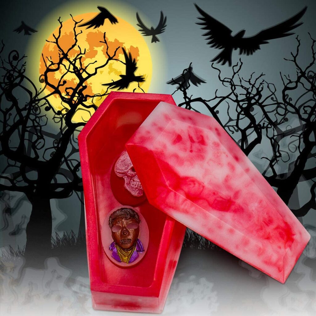 The set consists of 1x trinket box mold; 3 x resin casting molds(Bat, Owl, Spider), 1x Silica gel Molds (10 shapes). This Halloween molds set is ideal for creating imaginative ice cubes for Halloween party, bars, restaurants etc. Also, you can give it as a gift.
