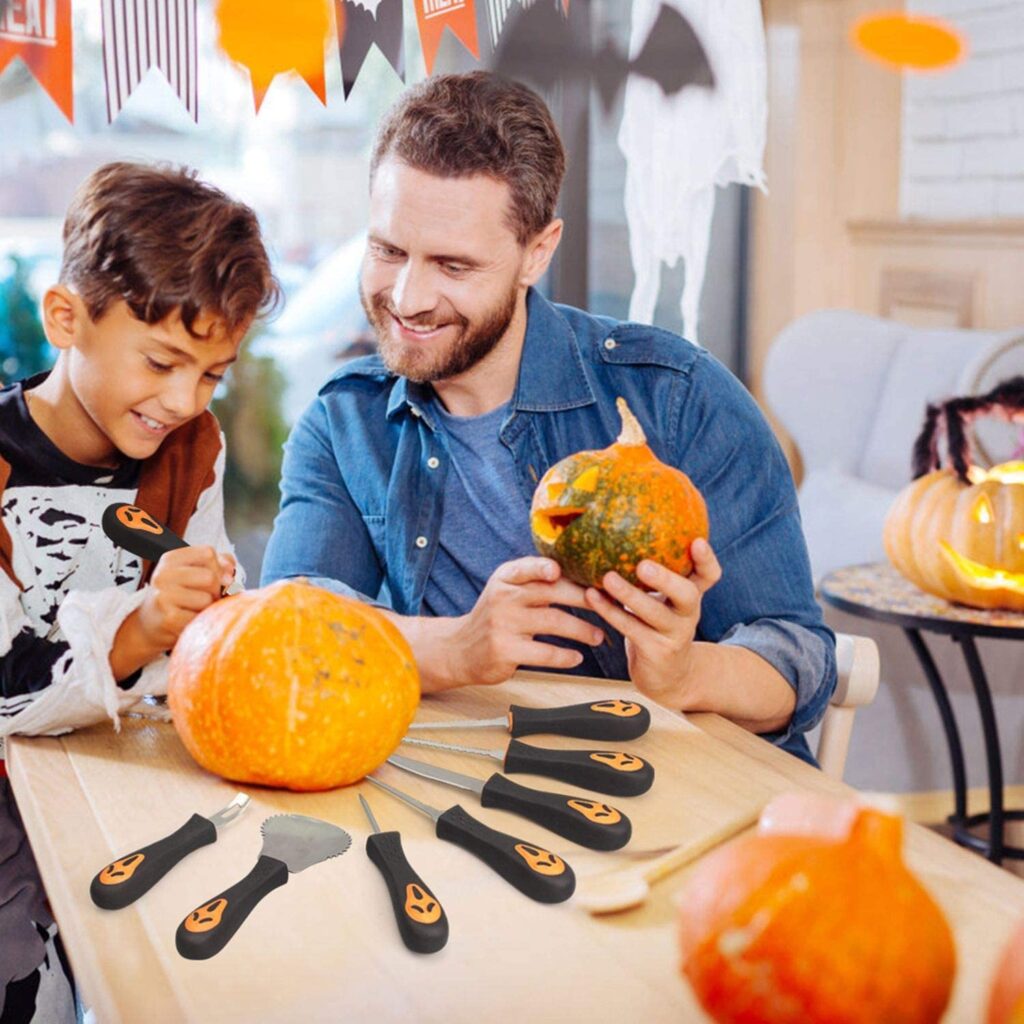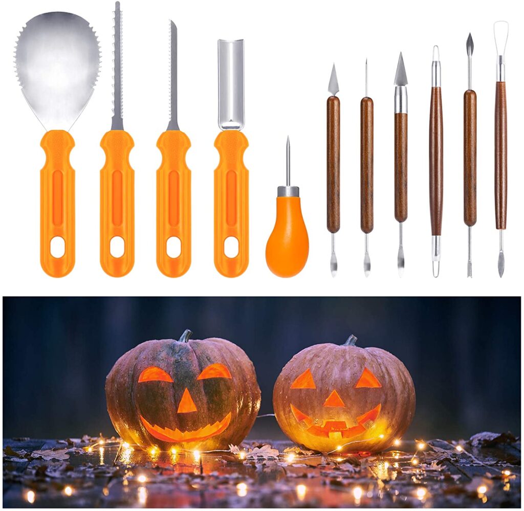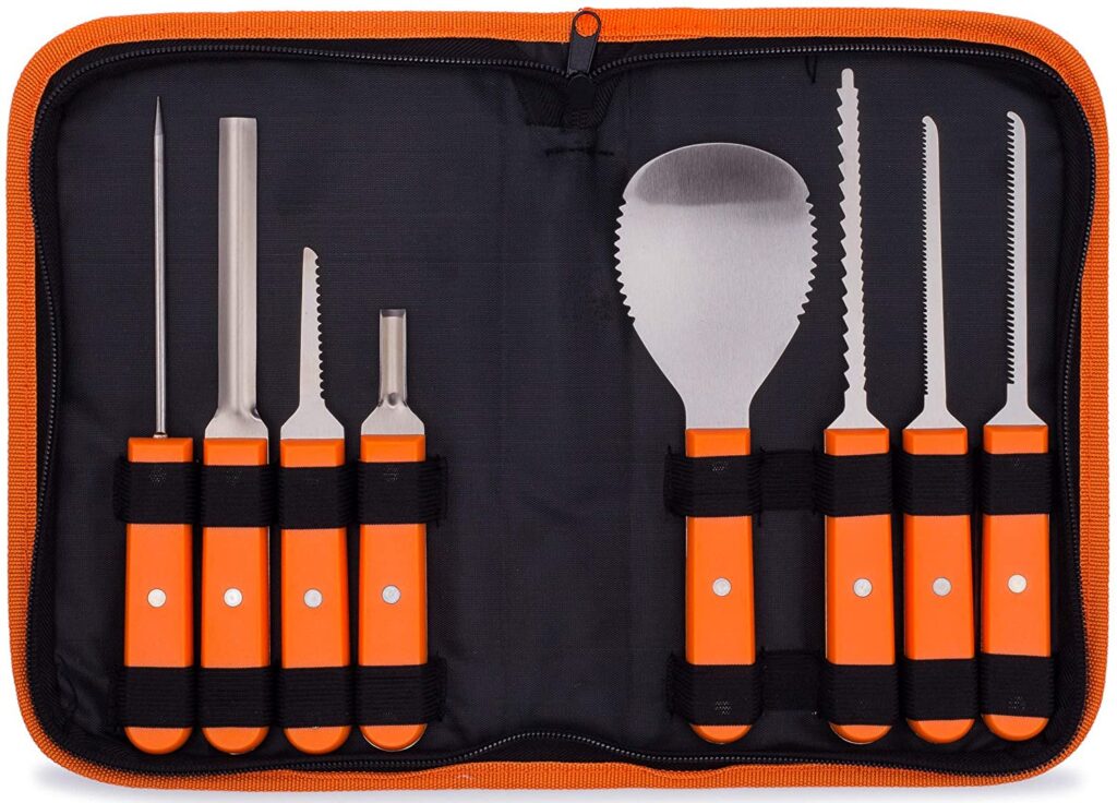 We liked the best this amazing GoStock pumpkin carving kit with soft ergonomically designed handles suitable for the whole family. Also, handles are decorated in Halloween theme. It just looks awesome and the price is only $20.98. Also, it’s great gift for Halloween geeks.